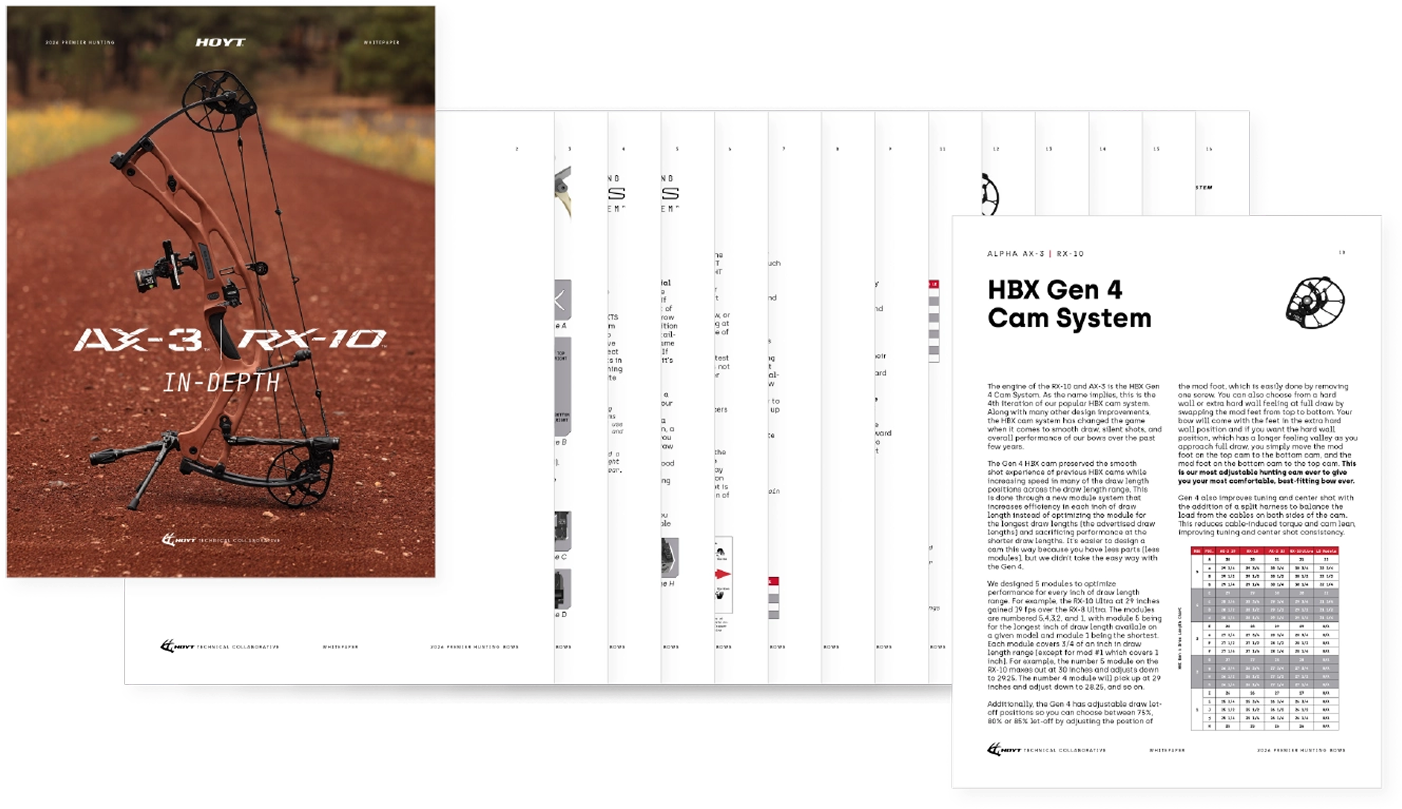 The Carbon REDWRX line received a major upgrade for 2026 with the patent-pending XTS Tuning System™. Getting your bow tuned and dialed has never been easier or more precise. The RX-10 comes in four model options: RX-10, RX-10 Ultra, RX-10 Ultra LD (Long Draw) and RX-10 SD (Short Draw). With this lineup, built with the HBX Gen 4 cam, you’ll be able to tune, shoot, and fill your tag easier than ever. Nothing shoots like a Hoyt Carbon REDWRX bow, and nothing outperforms the new RX-10.